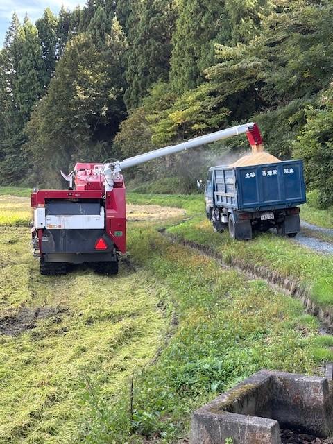 いっぱいの籾を積み込み、当社ライスセンターへ運びます!