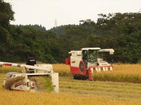 22年産新米の発売にむけて収穫作業が急ピッチで進められています。大型コンバイン2台で刈り取り作業。今年は異常な夏の高温で品質低下が全国で発生しておりますが、当地域は幸いにも後半の夜温が下がったため近年にない位の高品質なお米に仕上がりました。又、農薬を使わないお米(完全無農薬の表示は不可との事です。)につきましても今年はようやく成功致しました。来年は豆科の緑肥を利用して無肥料無農薬に取り組んでみたいと思っております。今回のお米は人の体の免疫力を高める亜鉛の入った資材を昨年の2倍の量を散布してありますので、『機能性食品』としての表示が出来るかどうかは分析結果待ちとなっております。