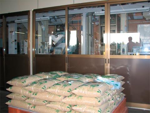 白米加工、異物の除去、カラー選別等一連の工程を経て『おいしく』できました。この後抗酸化処理された冷蔵庫で出荷を待ちます。