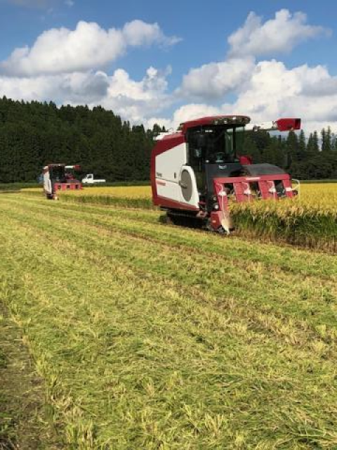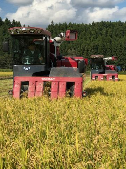 若いオペレーター達が、雨の合間に一生懸命刈り取りを頑張ってくれています。