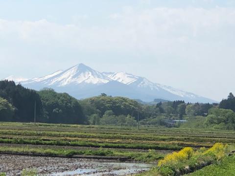 今年も田んぼの作業が始まりました。八甲田山には、たくさんの雪が残っています。