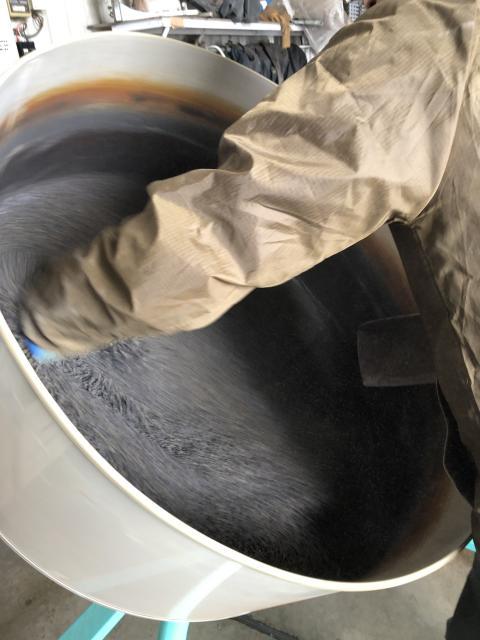 コーティング加工、ベテランのS君が、寒い中今年も頑張っています!